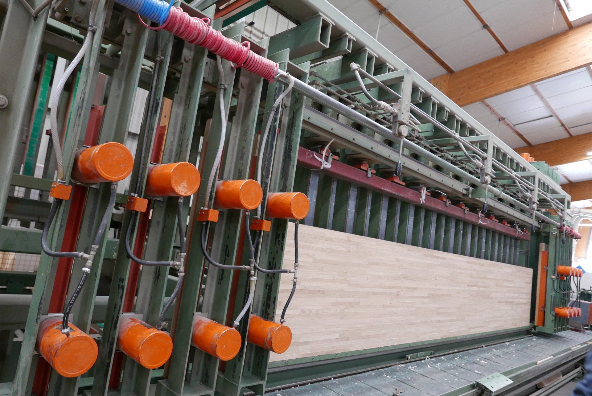 Les bois sont aboutés suivant les choix triés en amont.